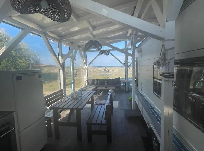 Situated 4.8 km from Akva Planet Primorsko Water Park, beachfront Sea Caravan/Camper On The Beach invites guests to relax at a sunbathing terrace. Guests can enjoy water sports activities, snorkelling, and diving at the campsite, located nearly a 10-minute ride from International Youth Center.